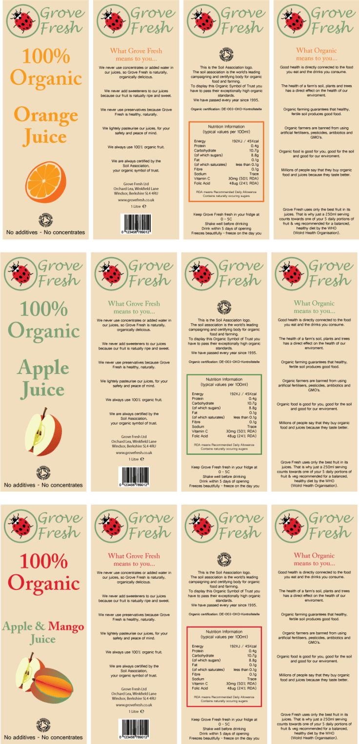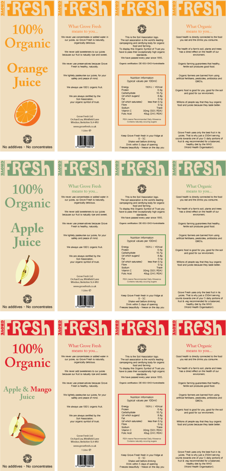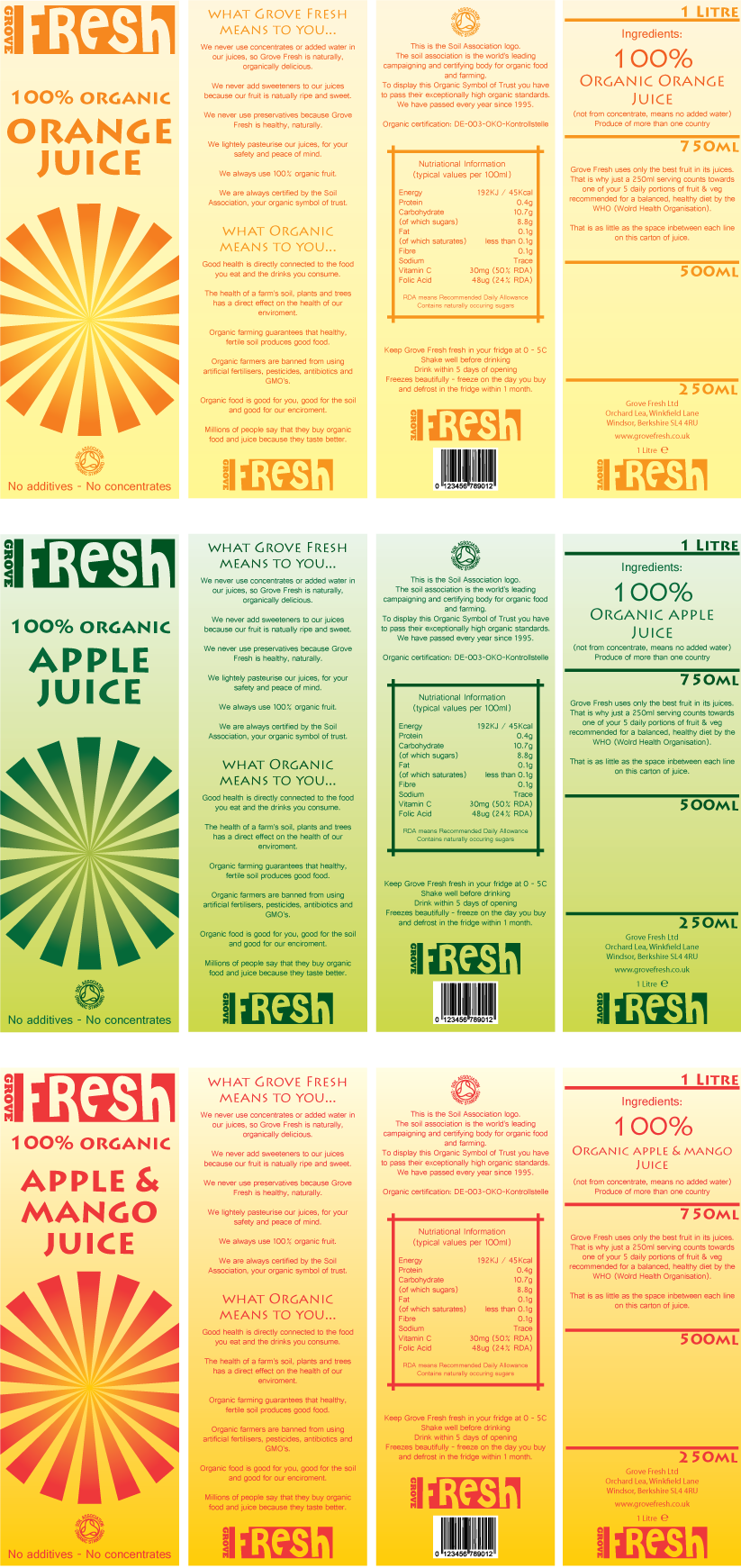 Grove Fresh – Fully Completed Designs! And here they are… my 3 final designs for Grove Fresh fruit juice packaging… Idea 1… Idea 2… Idea 3… Tom out! Share this: Click to email a link to a friend (Opens in new window) Email Click to share on Facebook (Opens in new window) Facebook Click to share on LinkedIn (Opens in new window) LinkedIn Click to share on Reddit (Opens in new window) Reddit Click to share on WhatsApp (Opens in new window) WhatsApp Like Loading... Related Leave a comment Cancel reply Δ