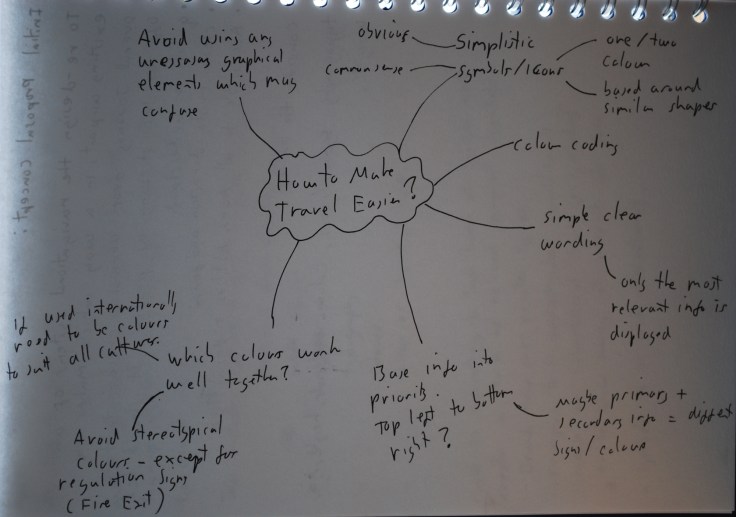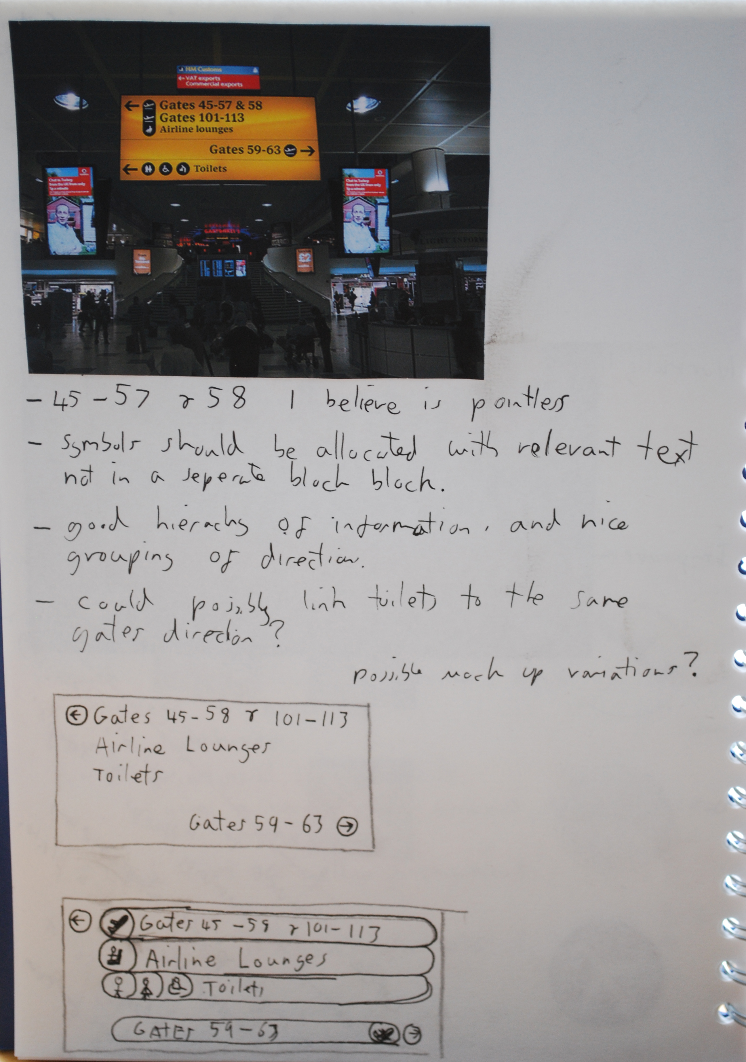 I decided to choose the airport idea. The reason for this being: I often find myself confused in airports, most places of transport actually, I also see other groups of people who seemingly look lost at airports. I wondered why this was, perhaps the way-finding and navigational systems are not up to scratch? I have now decided to investigate this and find ways in which I can improve, maybe revolutionise signage, to make it clearer, simple to read and interpret.