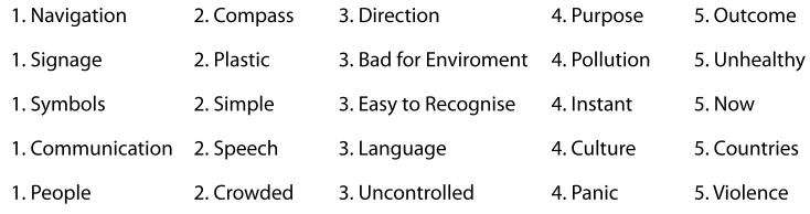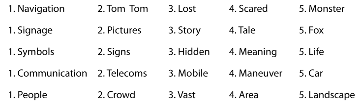 The first official day back was just as I expected, plenty of talking and a couple of exercises trying to get our creative mood back for the academic year ahead. The first exercise was similar to word association. I had to quickly pick five words which related to my practical project and for each of those discover 4 new words which link on from each other. Here is what I done: (click image for larger view)