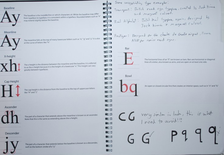 Today I decided to start off looking a bit into character anatomy within a typeface. Just a refresher and to kick start some thoughts. Well this is what i came up with: