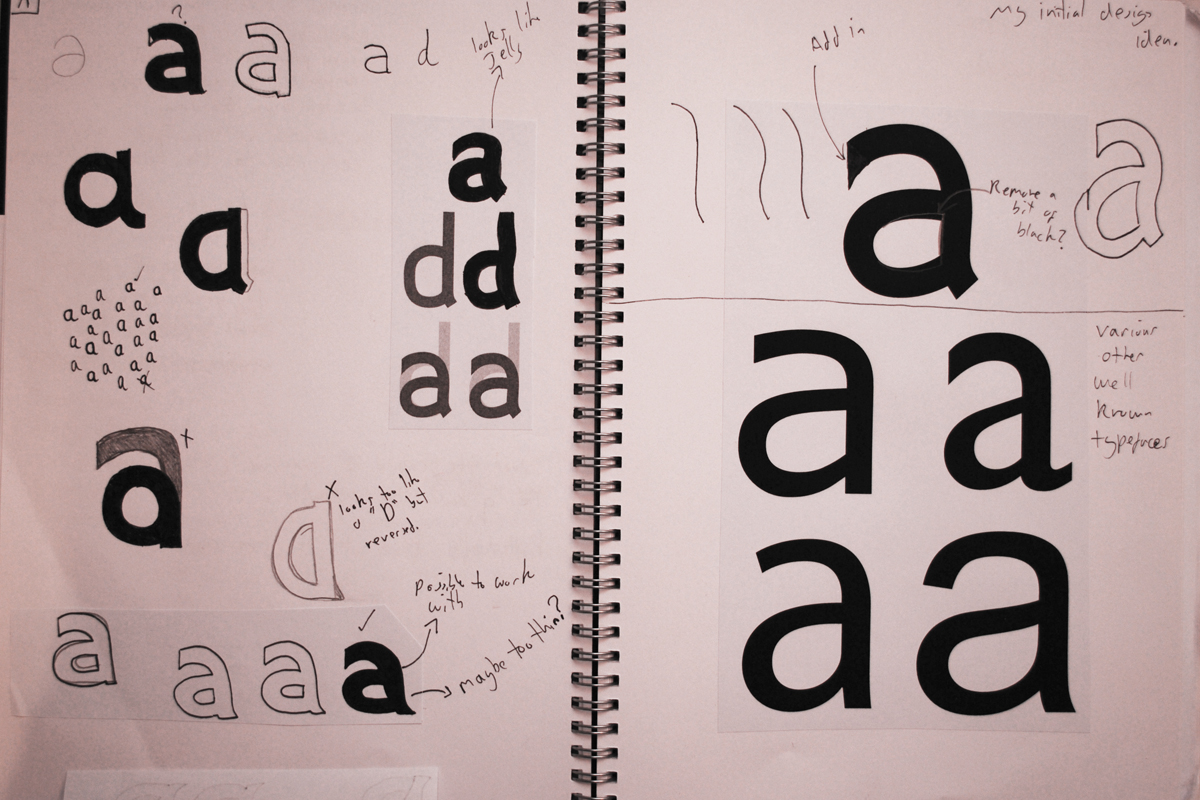 Today was, very much, another type orientated day. A little bit of sketch book work, followed up by some illustrator to smooth off those curves and realise the sketches in digital form. I’ve noticed a large improvement in my ability to do quick sketches of letter forms (primarily the letter “a”) just to get my thoughts down onto the page.