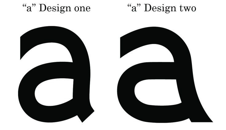 The new version, I believe, looks a little more like an “a” but I still think it takes up too much space to be much good for a signage system. It could potentially be better on longer signs, not so much on taller ones.