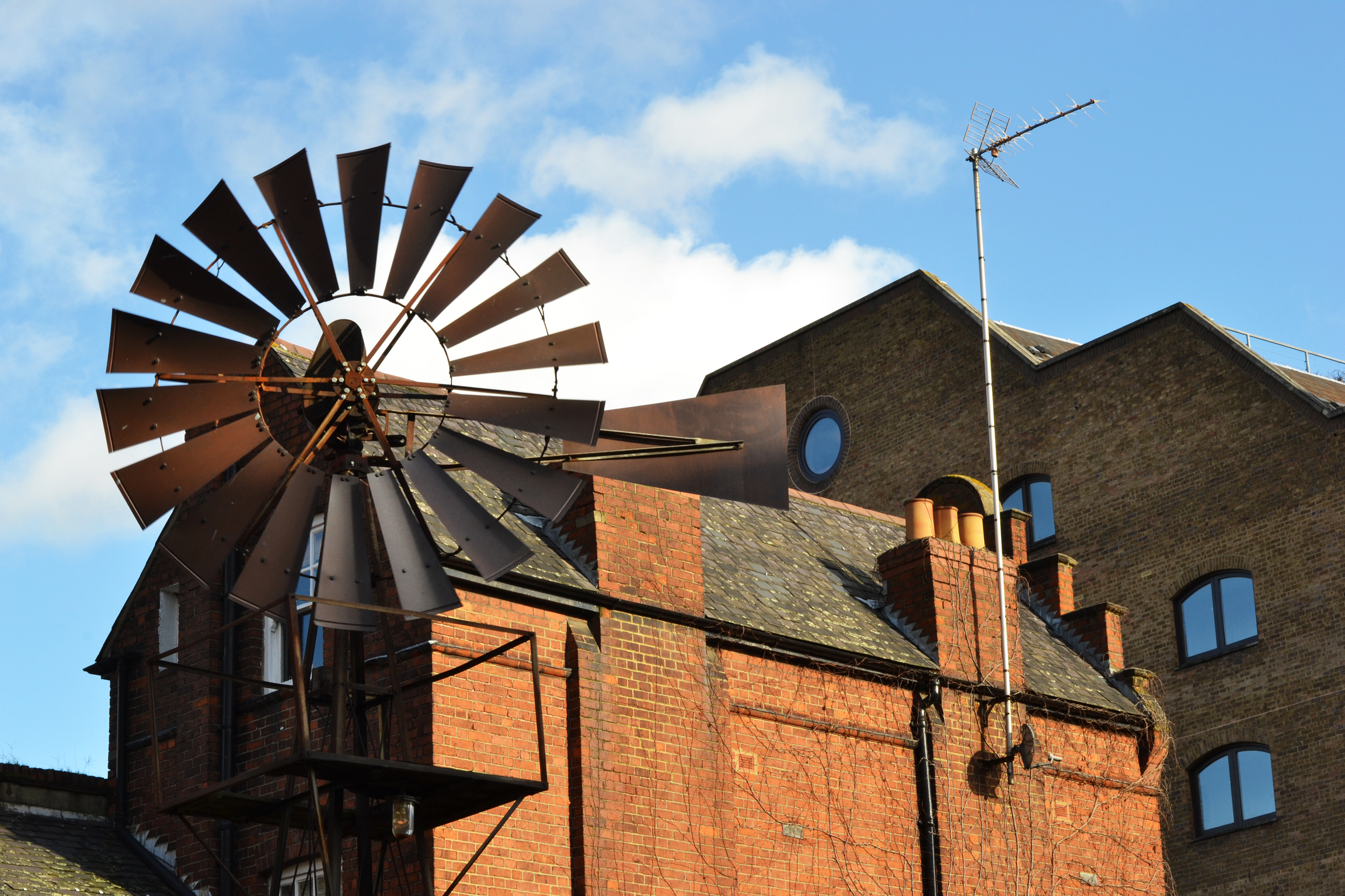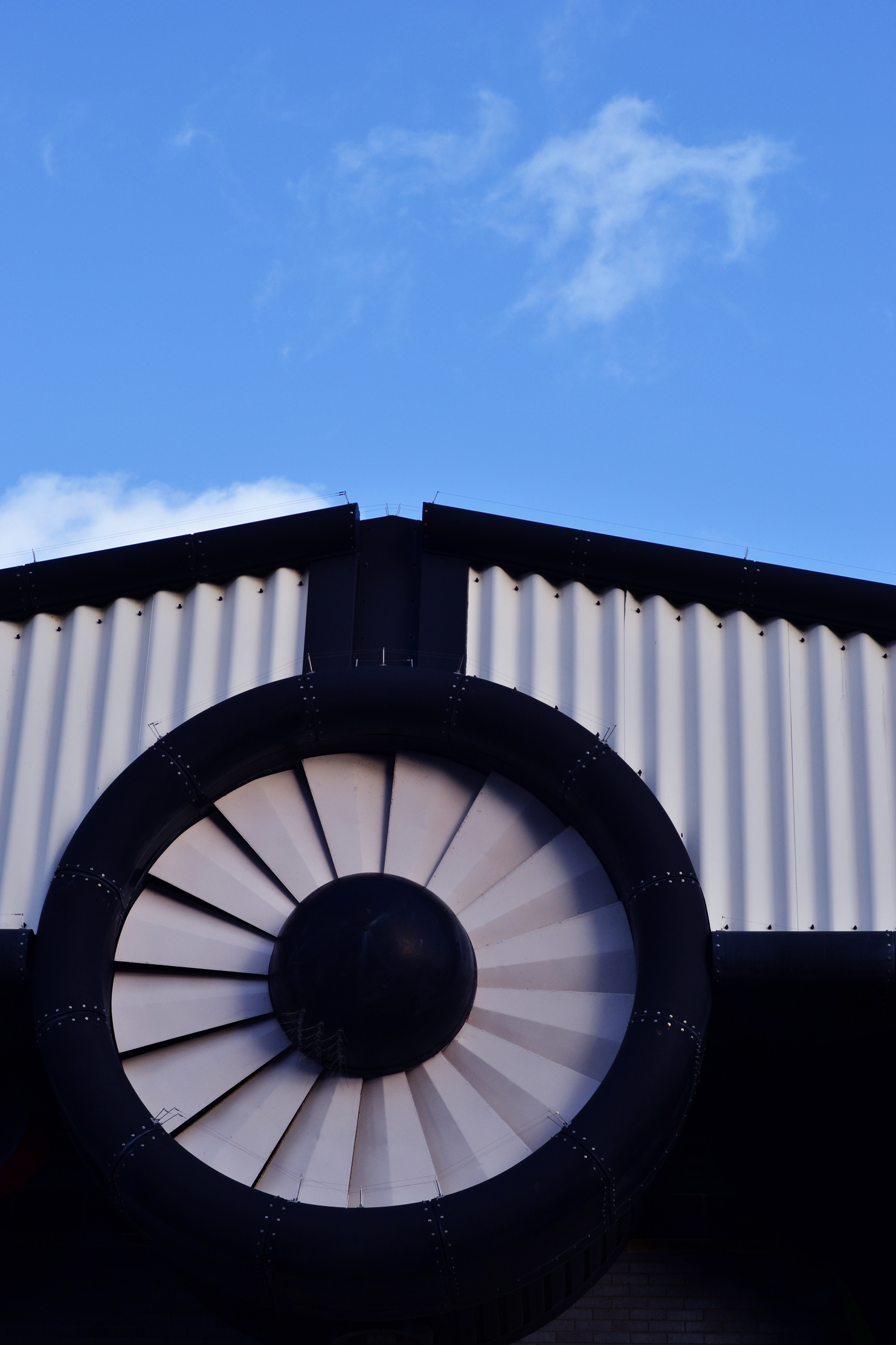 This fan was next to a building complex that used to be owned by the London Hydraulic Power Company. This company was set up by Parliament in 1883 to provide a network of high-pressure cast iron water mains. These were cleaner than the usual steam driven equivalent and much more efficient. The water was pumped direct from the Thames & during the winter was heated to prevent it freezing. At its height the system was used to power various machinery, lifts & workshops as well as being the back up power source for the mechanism used to open Tower Bridge.