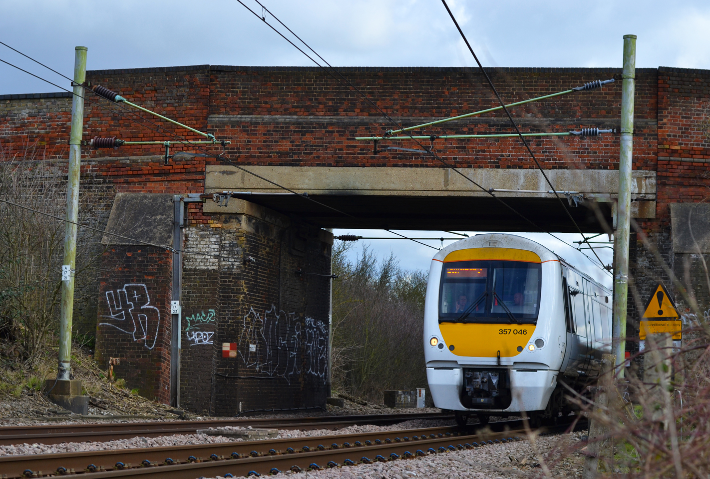 All along these fields there is a train track which runs the C2C commuter route from London Fenchurch Street to Southend. There are various bridges of all different shapes & sizes along the route, I’ve always wanted to attempt a shot of a train just as it comes through the bridge and this was my chance. After a steady wait for the train due to off-peak timetable services one finally came, I only had a split second to capture the train as it went under the bridge and although I could hear it approaching it was more guess work as to when it would expose itself. So crouched uncomfortably in some brambles on the side of the tracks I snapped away nervously and this is what I achieved.
