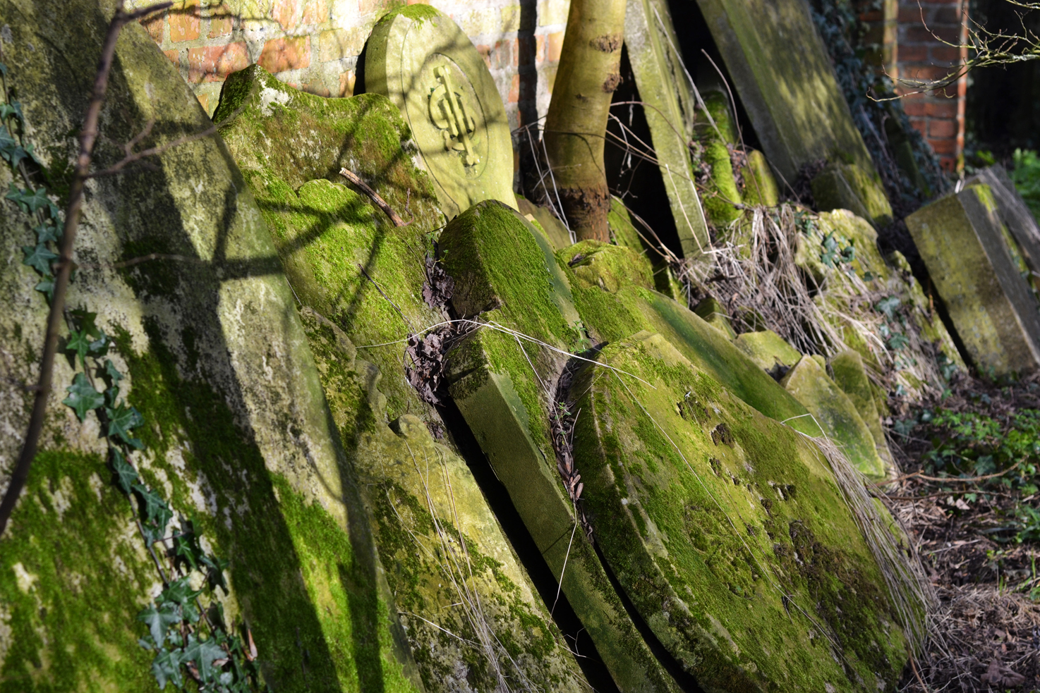 After the train, we had a long climb up a steady hill. The mud kept attaching itself to the bottom of my boots and made my feet feel twice as heavy, after much banter from Reiss about how I had an entire field of mud attached to my clumsy self we reached Church Lane. At the end of Church Lane there is a small fence that you can hop over into a tiny woodland area. Inside here you will find various graves all stacked up against a brick wall. All of them that can be found today are from the 19th Century, the earliest I believe was 1819. The actual church doesn’t exist any more as it was demolished in the 1920’s and as far as we could tell the only remains are the graves themselves. To find out some more information on the Old Great Warley Church you can visit this website, it is certainly an interesting read and has quite a bit of history dating back to the 13th Century.