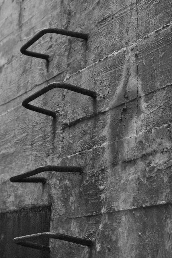 A set of iron steps leading down to one of the underground entrances of Battery Lothringen.