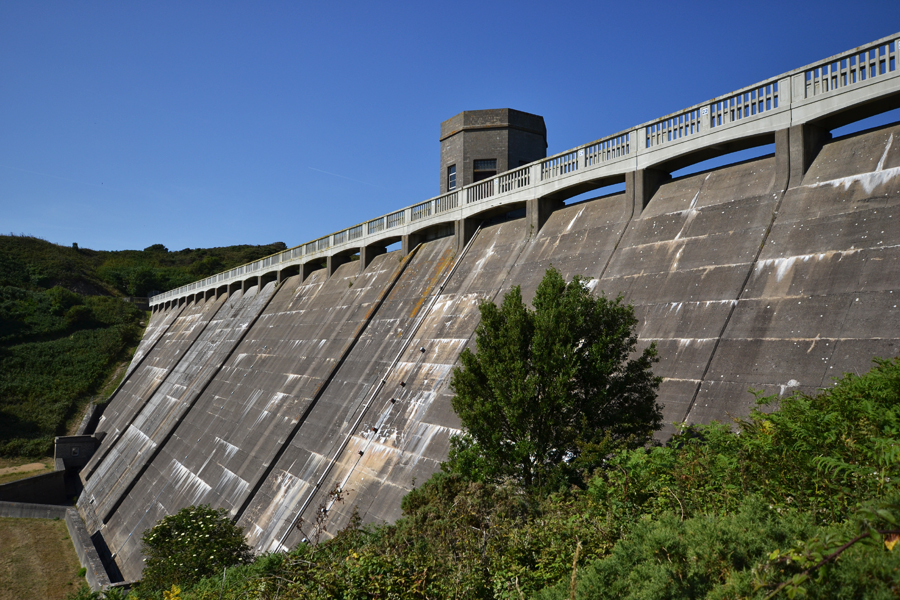 On the second to last day in Jersey I visited Val de la Mare Reservoir. To my great surprise at one end there was a large dam holding back the water which provided multiple photography opportunities. Some of the photographs I took went back to my old minimal architectural style which I think the dam was well suited for, the deep blue sky really helped to bring out the grey of the dam and the green hills on either side add another nice splash of colour.